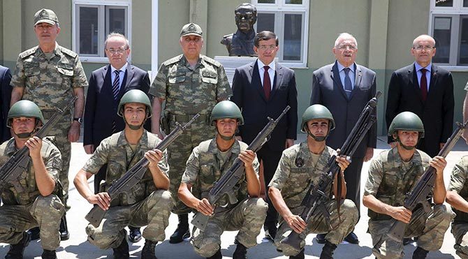Başbakan Ahmet Davutoğlu, önceki gün Suriye sınırındaki Kilis’in Elbeyli İlçesi’ni ziyaret etti. Davutoğlu, geçen ay dinci terör örgütü IŞİD militanlarının açtığı ateş sonucu şehit olan Astsubay Mehmet Yalçın Nane’nin görev yaptığı Dağ Hudut Karakolu’nda da incelemelerde bulundu. Davutoğlu’na ziyaretinde İçişleri, Milli Savunma ve Maliye Bakanları, eski Bakan Efkan Ala ile Genelkurmay Başkanı Necdet Özel ve Özel’in bu ay ortasında görevini devredeceği Kara Kuvvetleri Komutanı Hulusi Akar da eşlik etti. Davutoğlu’nun ziyareti IŞİD’le mücadelede önemli bir mesaj olarak da algılandı. Ancak ziyaret sırasında Davutoğlu’nun askerlerle birlikte çektirdiği bir fotoğraftaki detay dikkat çekti. Genelkurmay Başkanı Özel, yeni Genelkurmay Başkanı Akar, Davutoğlu ve bakanların önünde askerler diziliydi. Askerler tüfeklerini çapraz tutuyordu. Ancak tüfeklerin şarjörleri yoktu.