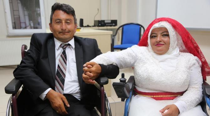 Ünye'de yaşayan bedensel engelli 42 yaşındaki Ahmet Kaymak, aşık olduğu kendisi gibi bedensel engelli 39 yaşındaki Ayşe Topaloğlu’na sosyal medya üzerinden evlilik teklif etti. Ayşe Topaloğlu da evlilik teklifini yine sosyal medya üzerinden kabul etti. Çiftin ailelerinin de onay vermesinin ardından dün düzenlenen düğünle engelli çift evlendi. Ünye Ticaret Lisesi Salonu'nda yapılan düğün töreninde ilk danslarını tekerlekli sandalyelerinin üzerinde yaptı. Çiftin ailesi ve yakınları da düğünde mutluluklarını paylaştı.