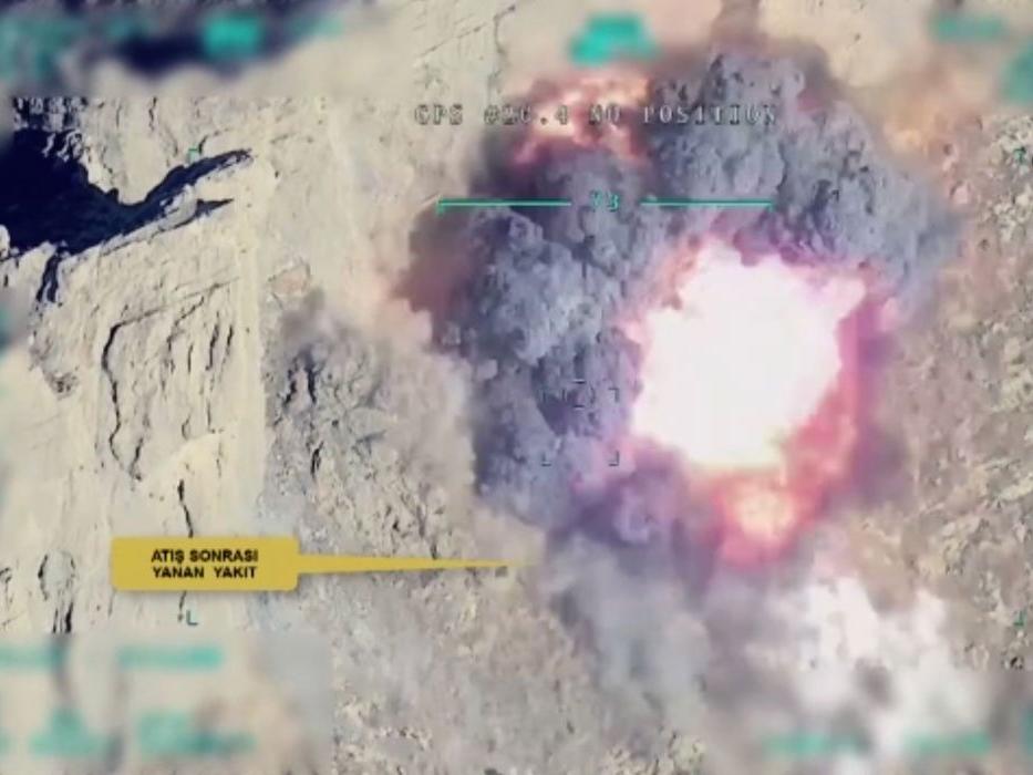 MSB'nin sosyal medya hesabından paylaştığı görüntülerde PKK'lı teröristlere ait mağara, sığınak ve sözde karargahın pilotlar tarafından tam isabetle vurulduğu görülüyor.
