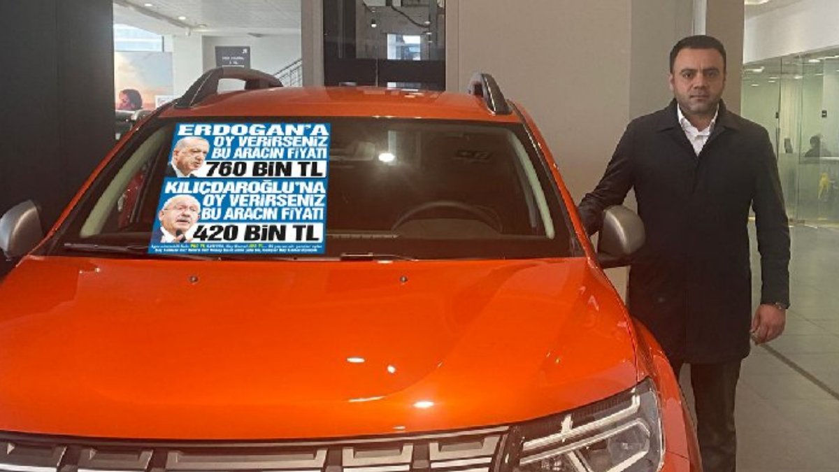CHP’li İstanbul Büyükşehir Belediyesi Meclis Üyesi Nadir Ataman, üzerinde “Cumhur İttifakı’na oy verirseniz bu aracın fiyatı 760 bin TL, Kemal Kılıçdaroğlu’na oy verirseniz bu aracın fiyatı 420 bin TL” yazılı fotoğrafı sosyal medya hesabından paylaşarak, Kılıçdaroğlu’nun ‘İlk arabanız ÖTV’siz olacak’ açıklamasına destek verdi.