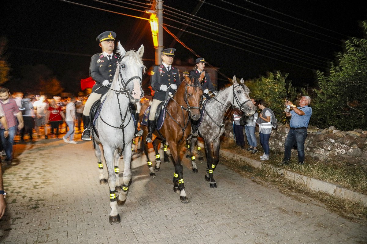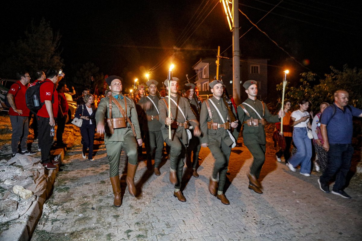 Temsili yürüyüşe katılanlara atlı birlikler de eşlik etti. Meşaleler ve Türk bayraklarıyla yürüyüşe katılanlara soğuk hava nedeniyle battaniye ve kaşkol dağıtıldı.