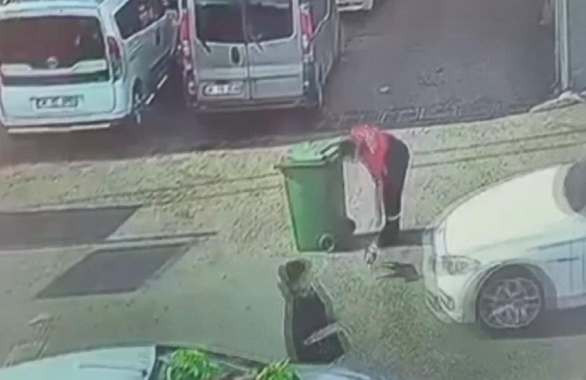 Çalışan köpeği bir süre severken, o sırada yoldan geçen otomobil geri dönmeye çalışan köpeğe çarptı. Otomobilin altında kalan yavru köpek hayatını kaybederken, sürücü durmayarak yoluna devam etti.