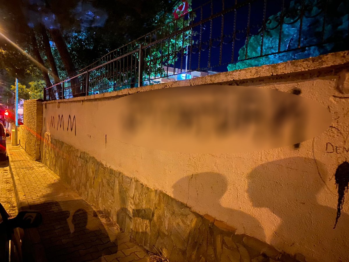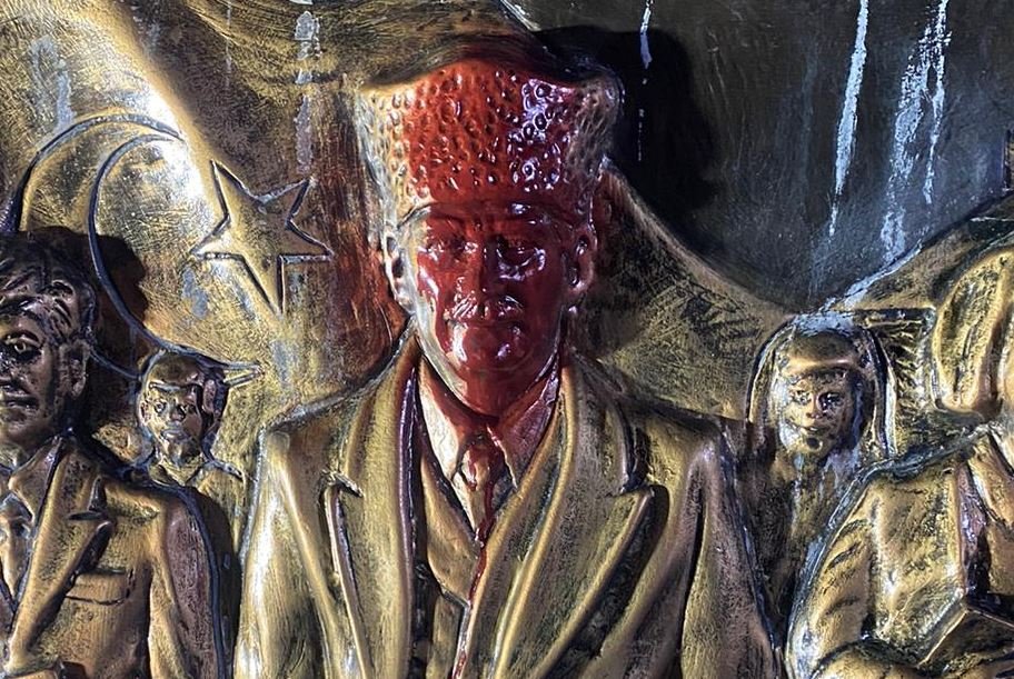 Atatürk’ün, kaidenin yan tarafında yazılı olan “Benim naçiz vücudum elbet bir gün toprak olacaktır. Fakat Türkiye Cumhuriyeti ilelebet payidar kalacaktır” sözünün üstüne de siyah renkli sprey ile hakaret içeren yazılar yazıldı.