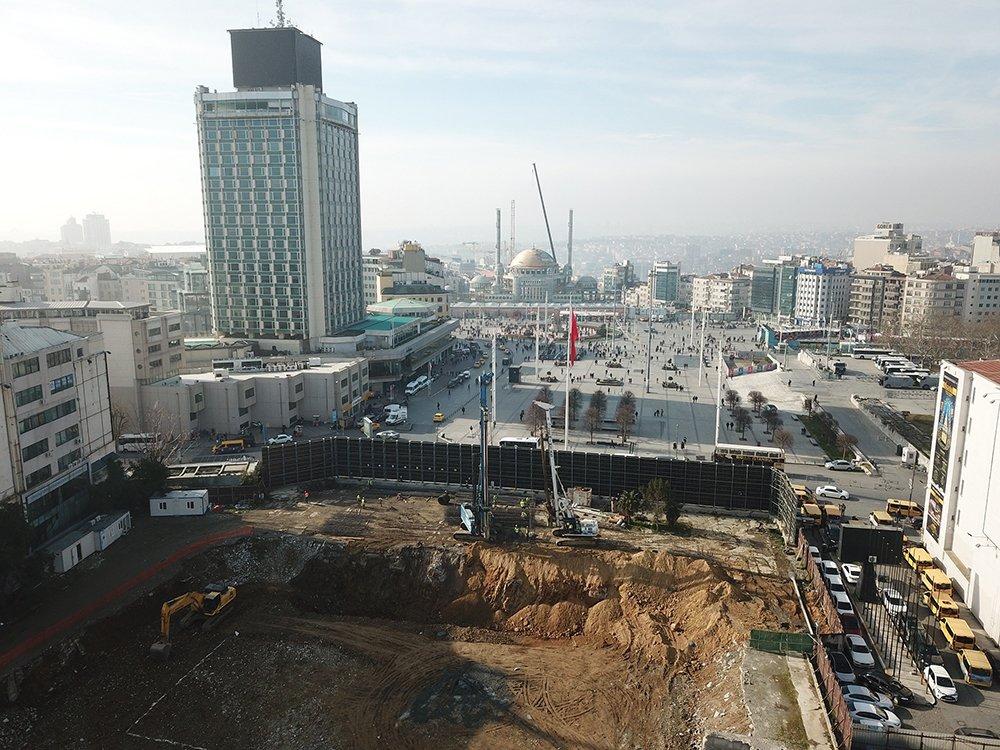 Geçtiğimiz sene şubat ayında yıkımına başlanan AKM'de hafriyat çalışmalarının ardından, temel çalışmalarına başlandı. İş makineleri temel çukuru kazarken, şantiye arazisinde toprak kaymasının önüne geçmek için kazıklı temel beton dökümü de yapılıyor. AKM arazisinin son hali ve iş makinelerinin çalışması havadan fotoğraflandı.