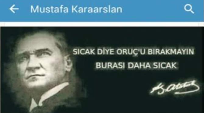 Atatürk'ün fotoğrafının üzerine 'Sıcak diye oruç bozmayın, burası çok sıcak. K. Atatürk' yazılarak sosyal medyadan yapılan paylaşımla ilgili Gaziantep Şahinbey Belediye CHP Meclis Üyesi Uğur Kalkan suç duyurusunda bulundu.
