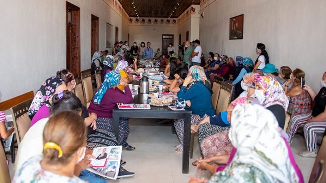 MERSİNDEN Kadın Kooperatifi Başkanı Meral Seçer, Gazi Çiftliği'ndeki ilk toplantıda, Silifke'nin Atayurt Mahallesi'nde yaşayan çiftçi kadınlarla bir araya geldi.
