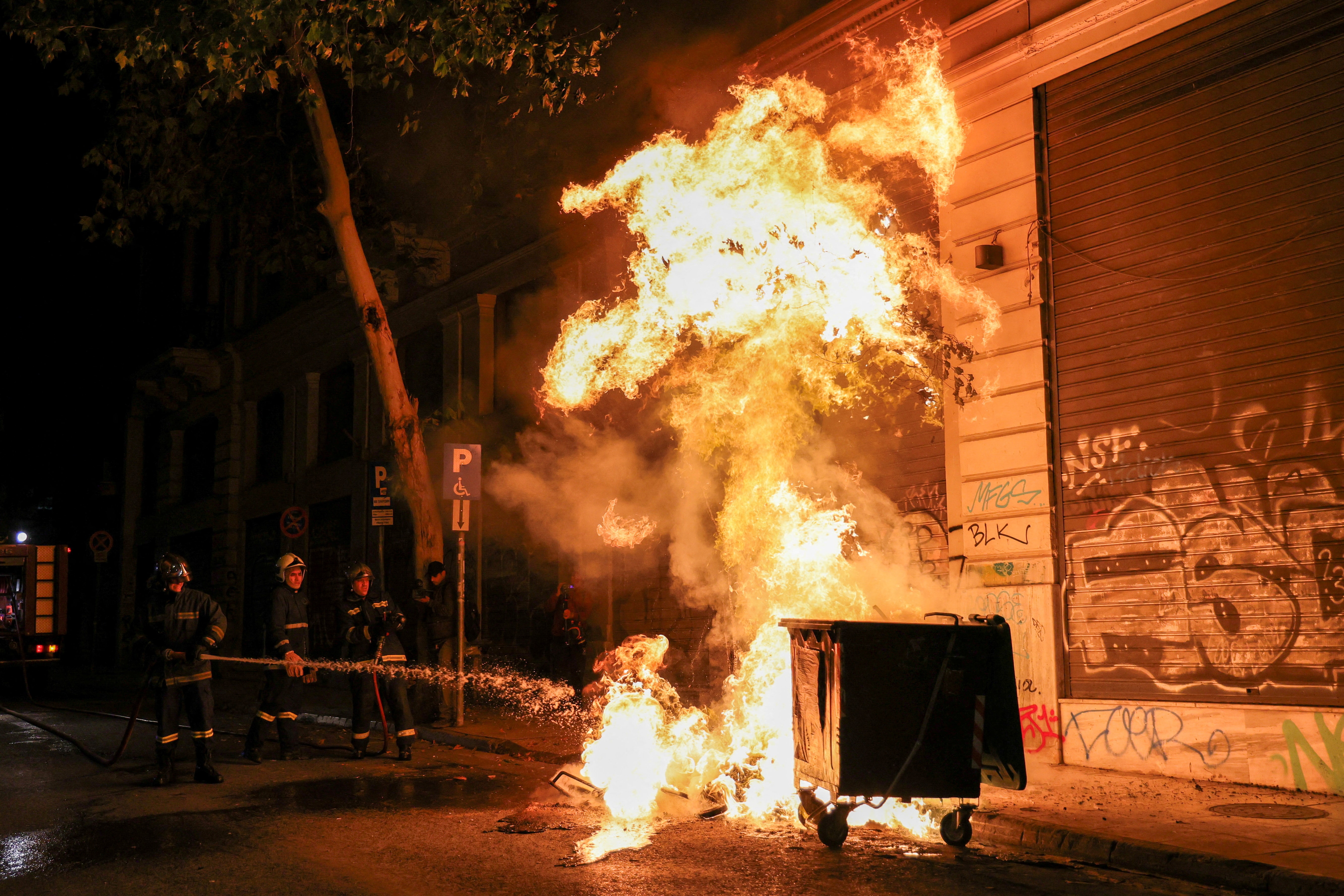 Akşam saatlerinde başkentte binlerce kişinin katıldığı ikinci gösteride ise Eksarhia semtinde bir grup, çöp bidonlarını ateşe vererek yolda barikat kurdu, çevredeki dükkanlara zarar verdi.