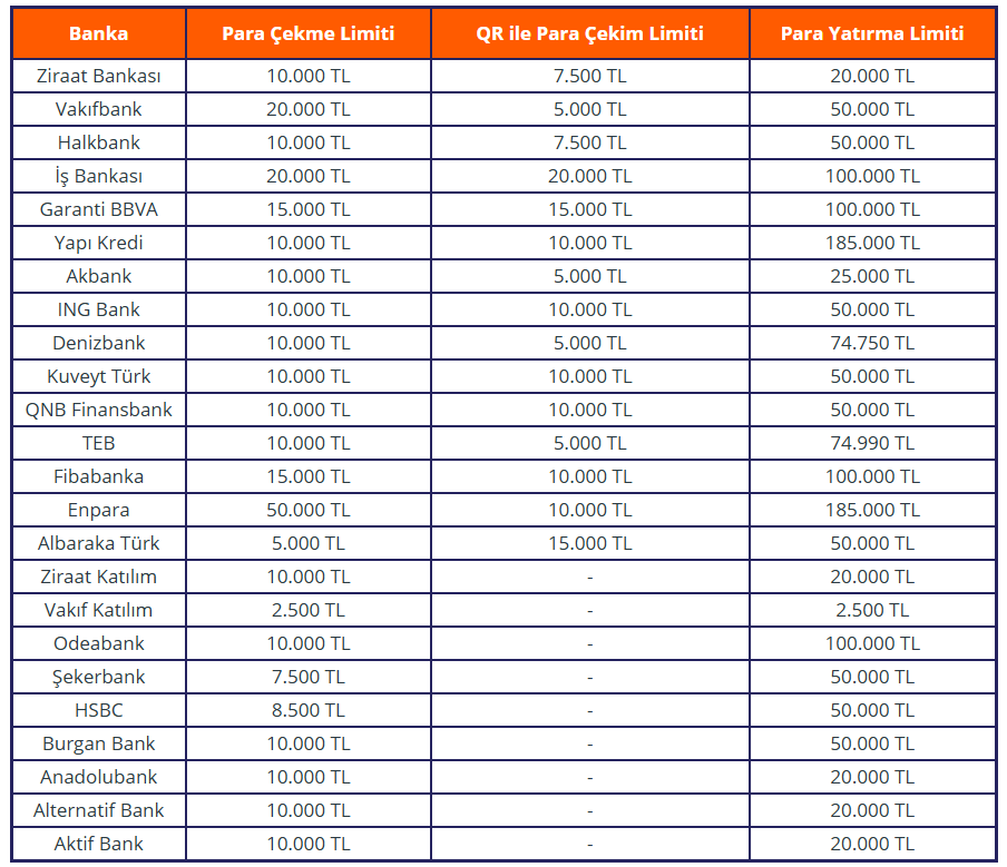 GÜNCEL ATM'DEN KARTLA VE QR KODLA PARA ÇEKME LİMİTLERİ: