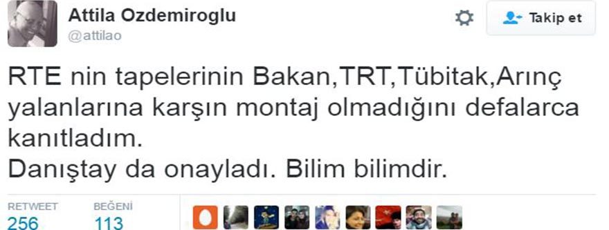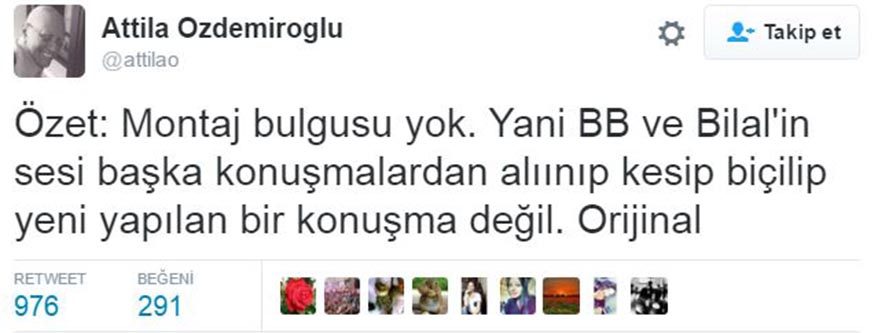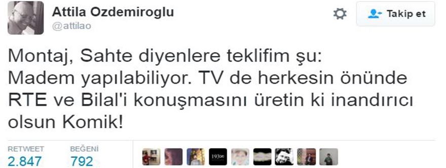 Bir dönem (Türkiye Musiki Eseri Sahipleri Meslek Birliği) MESAM Başkanlığı da yapan müzisyen ve ses mühendisi Attila Özdemiroğlu, internette sızdırılan dönemin Başbakanı Erdoğan ve oğlu Bilal'e ait olduğu iddia edilen ses kayıtları için montaj iddialarıyla ilgili araştırma yapmıştı.