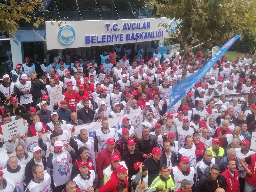 İşçiler taleplerin dile getirildiği sloganlar atarken belediye binasına gelen Avcılar Belediye Başkanı Turan Hançerli protesto edildi. Belediye-İş Sendikası Genel Başkanı Nihat Yurdakul otobüsün üzerinde konuşma gerçekleştirdi.
