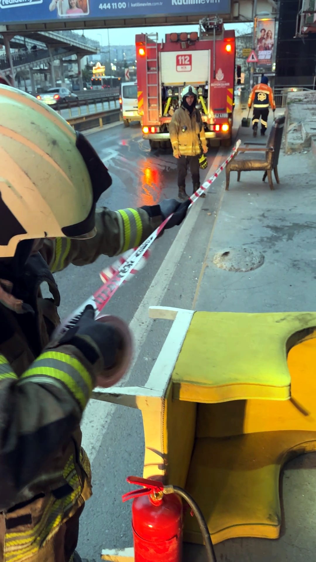 Ekipler, durumu elektrik idaresine bildirdi ve güvenlik önlemleri alınarak bina çevresine güvenlik şeridi çekildi.