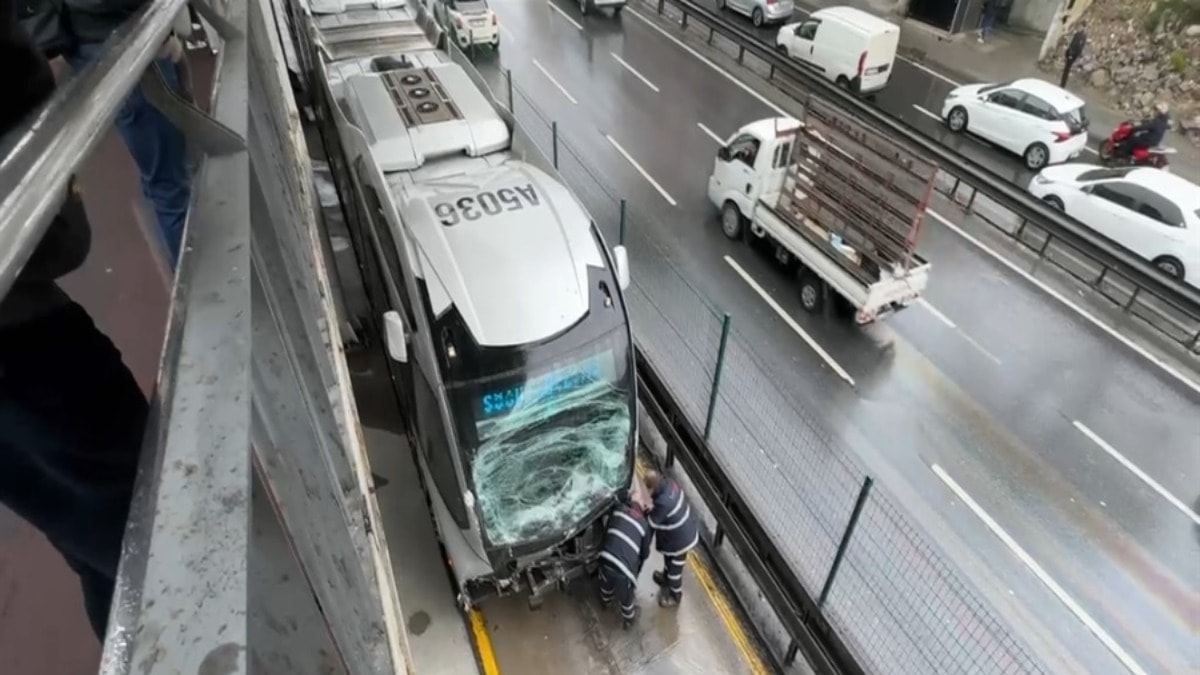 Avcılar'da Söğütlüçeşme istikametinde seyir halindeki metrobüs, Büyükşehir Belediyesi Sosyal Tesisleri durağında bekleyen başka bir metrobüse çarptı.