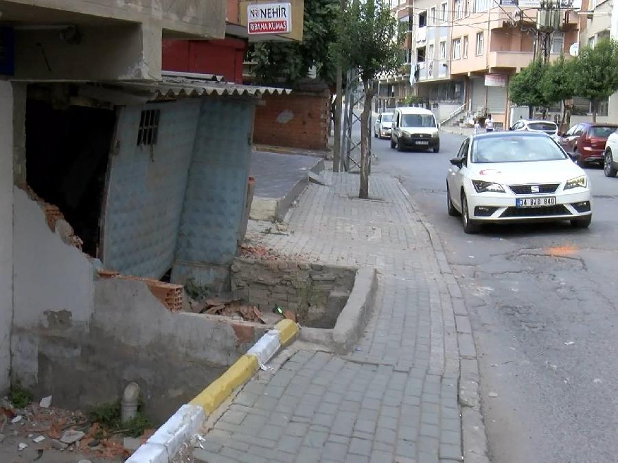 Esnaf Ahmet Kuzu, "Anne ve kızı yolun ortasında duruyordu, korkuyla kaçtılar, kıl payı kurtuldular. Sürücü hafif yaralandı, burnu kanıyordu" dedi. (DHA)