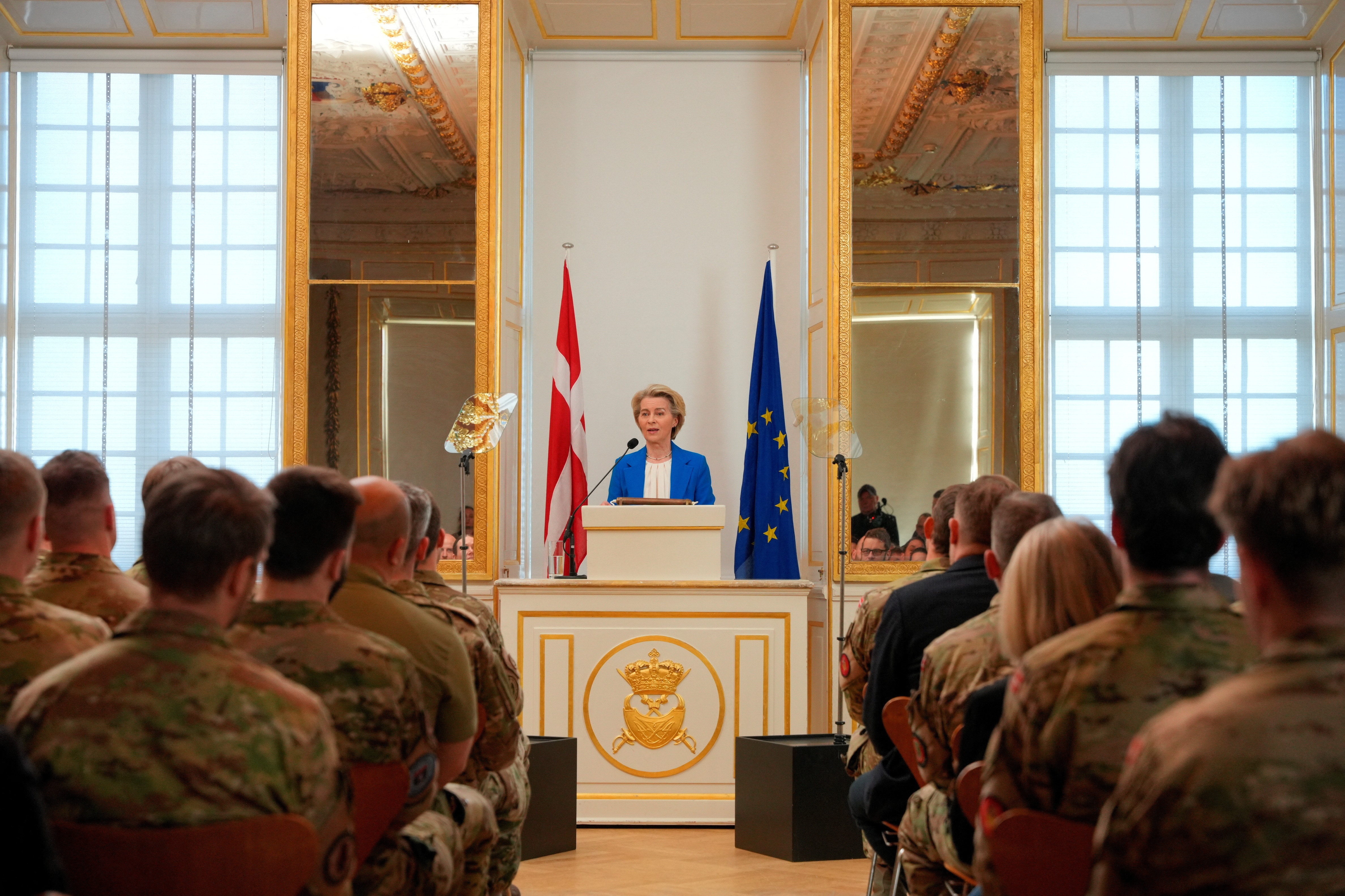 Von der Leyen, Kopenhag’daki konuşmasında, “Daha fazla Avrupa üretimi silah almalıyız. Avrupa çapında bir askeri teçhizat pazarı oluşturmamız gerekiyor” ifadelerini kullandı.