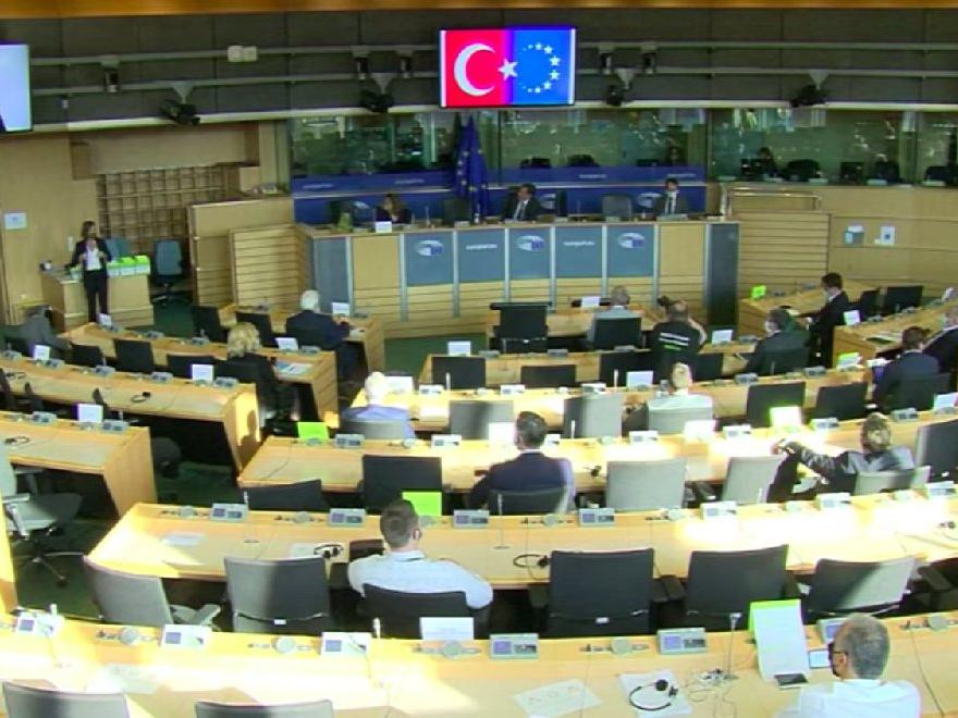 Türk ve AB bayrakları Çavuşoğlu konuşurken ekrana getirilmişti.Alman Milletvekili Reinhard Bütikofer, kullanılan logonun kaldırılmasını istedi.
