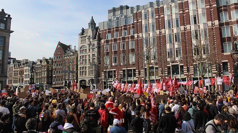 Hollanda'nın başkenti Amsterdam'da çok sayıda kişi Dam Meydanı’nda bir araya gelerek protesto gösterileri düzenledi.