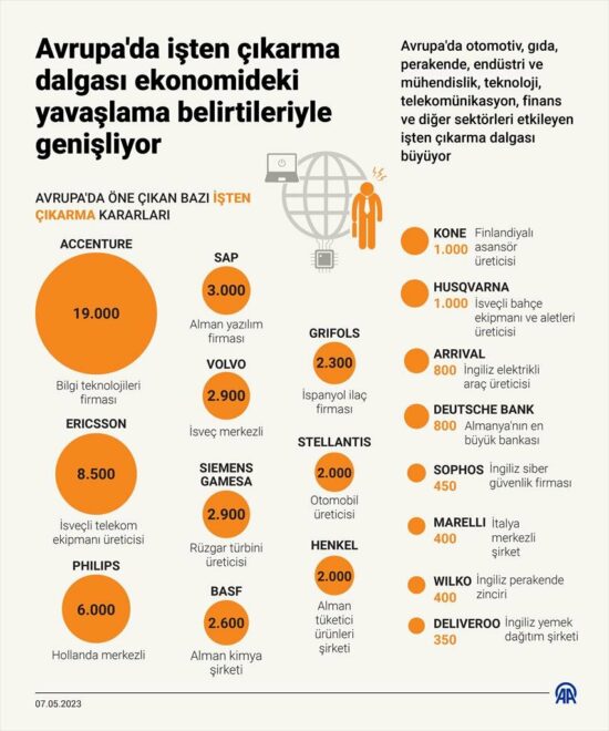 Avrupa'da otomotiv, gıda, perakende, endüstri ve mühendislik, teknoloji, telekomünikasyon, finans ve diğer sektörlerdeki işten çıkarma kararlarına her gün yenileri ekleniyor.