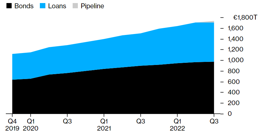 2019'un 4. çeyreğinden 2022'nin 3. çeyreğine kadar enerji şirketlerinin borç yükümlülükleri önemli ölçüde arttı (Kaynak: Bloomberg)EKONOMİ ALARM VERİYOR