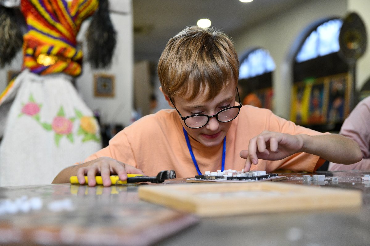 Büyükşehir Belediyesi Jale Tekinalp Yücel Kültür ve Sanat Merkezi'ndeki atölyeye katılan öğrenci ve öğretmenlere mozaik hakkında bilgi verildi.