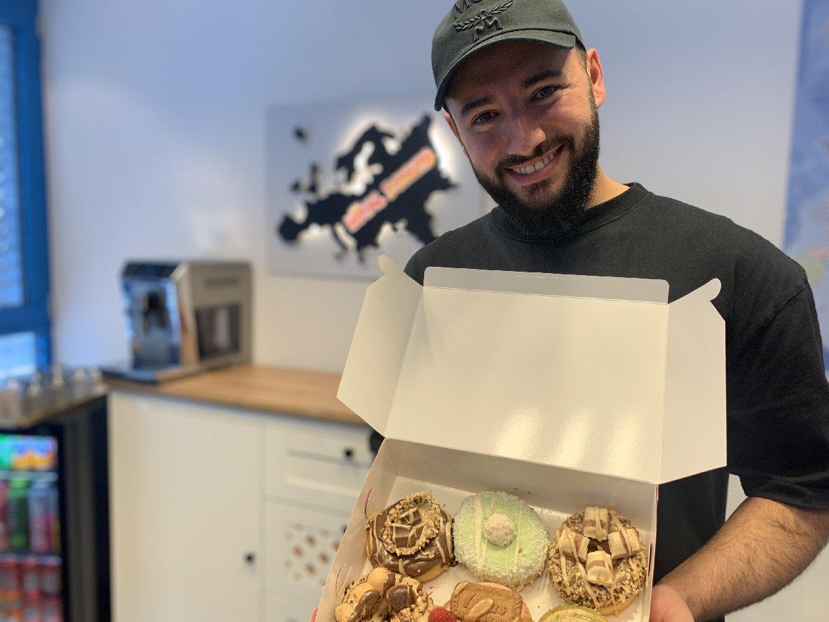 Amerikan çöreği olarak bilinen donutun 120 çeşidini geliştiren Sivas kökenli 26 yaşındaki Enes Şeker'in Royal Donuts pastane zinciri şubelerine ilgi oldukça yoğun. Şeker, Almanyanın Aachen kentindeki ofisinde kısa sürede yakaladığı başarı öyküsünü Demirören Haber Ajansına (DHA) anlattı.