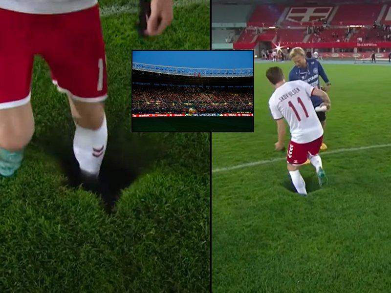 UEFA Uluslar Ligi'nde oynanan Avusturya-Danimarka maçının öncesinde elektrik kesintisiyle başlayan garip olaylar silsilesi, maç sonunda sahada dev bir delik açılmasıyla son buldu...