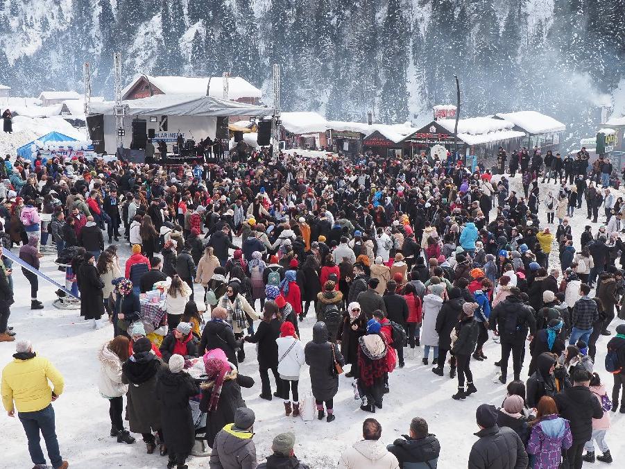Yarı yolda çarpışanların yanı sıra duramayanlar eğlenceli dakikalar yaşarken, izleyenlere de bir görsel şölen sunuyor. Kaymaktan çekinenenler ise müzik eşliğinde horon halkaları oluşturularak kar üzerinde eğlencenin tadını çıkartıyor.