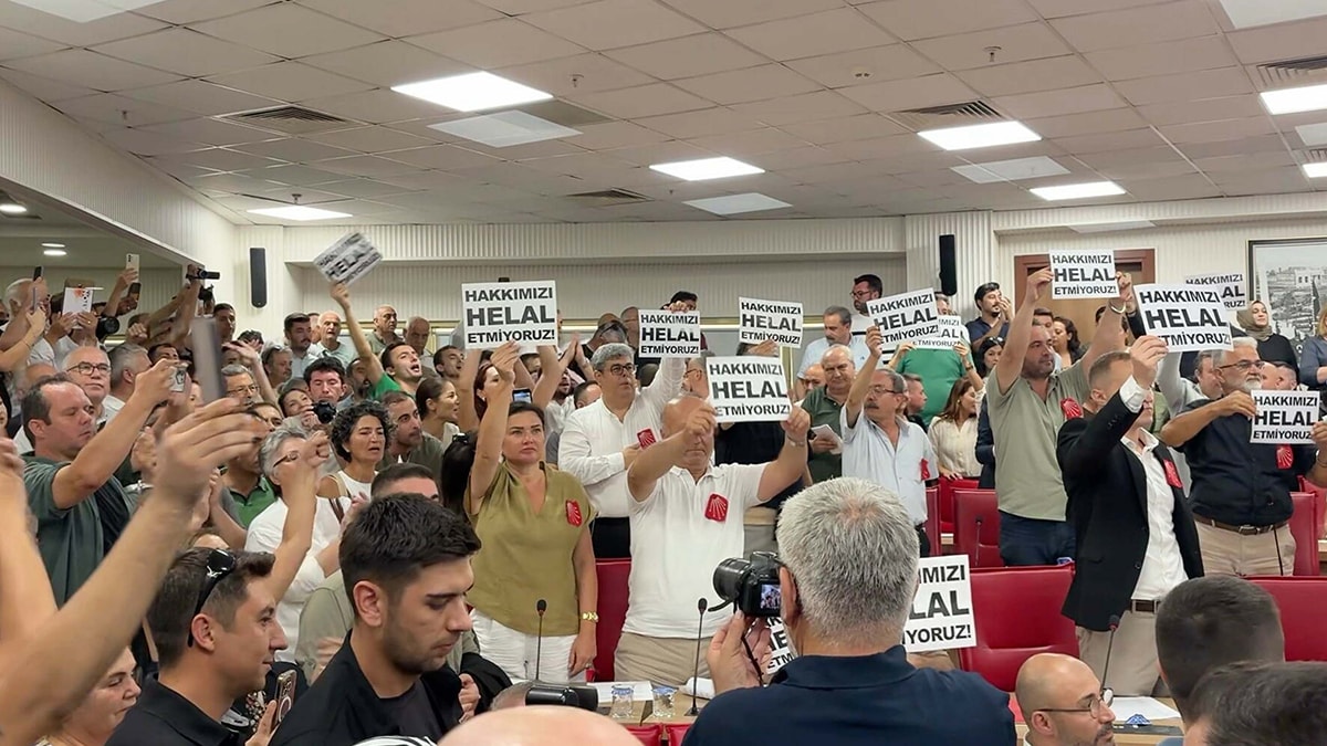Aydın Büyükşehir Belediye Meclisi'nin bugün 18.00'de yapılacak eylül alı olağan toplantısına meclis üyeleri eksiksiz katılım sağladı. CHP’li üyeler salonda yer kalmadığı için içeri alınmak istenmedi. Ancak CHP’liler, zor da olsa salona girdi. Toplantıya başkanlık yapması beklenen, CHP'den istifa ederek AKP'ye katılan Aydın Büyükşehir Belediye Başkanı Özlem Çerçioğlu ise toplantıya gelmedi. Onun yerine Aydın Büyükşehir Belediye Başkanvekili Polat Bora Mersin toplantıya başkanlık yaptı. Salonda meclisi takip etmek isteyen CHP’li üyeler ile AKP’li üyeler karşı karşıya geldi. Tıklım tıklım dolu salonda karşılıklı sloganlar atıldı. CHP'li bir üyenin meclise başkanlık eden Mersin’e kalem fırlatmasıyla gerginlik tırmandı. Başkan Mersin, toplantıyı 16 Eylül saat 18.00’e erteledi.