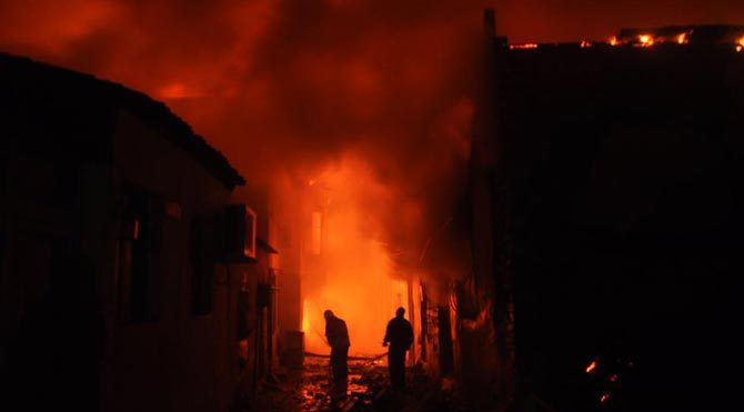Evden yükselen alevleri görenler durumu itfaiye ve polis ekiplerine bildirdi. İhbar üzerine gelen itfaiye ekipleri yangına müdahale etti. Rüzgarın etkisiyle alevler diğer metruk evlere de sıçradı. İtfaiye ekipleri, alevlerin sokakta bulunan Hacı İbrahim Camii'ne ve yerleşim yerlerine ulaşmaması için büyük çaba harcadı.