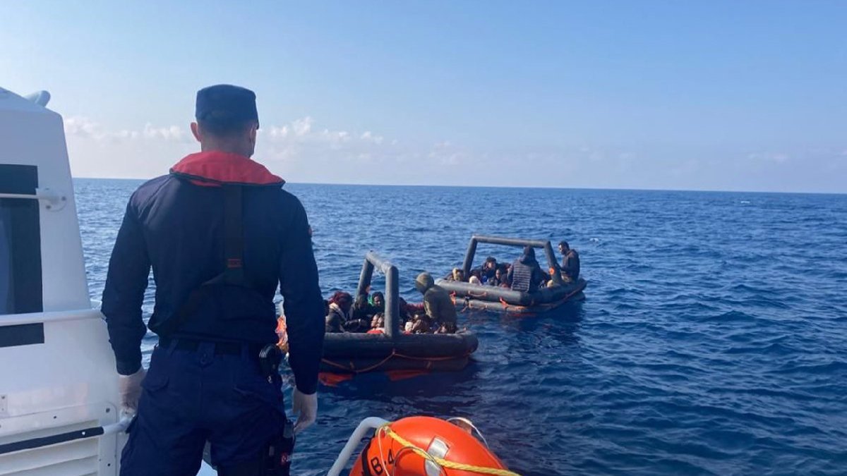 Didim açıklarında Türk kara sularına geri itilen 2 can salındaki 30 düzensiz göçmen kurtarıldı.