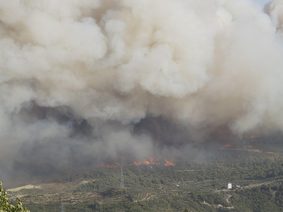 Foto: SÖZCÜRüzgarın yön değiştirmesiyle alevler Söke’nin Çeltikçi ve Yenidoğan mahallelerine yöneldi. Söke ilçesi bir süre duman altında kaldı.