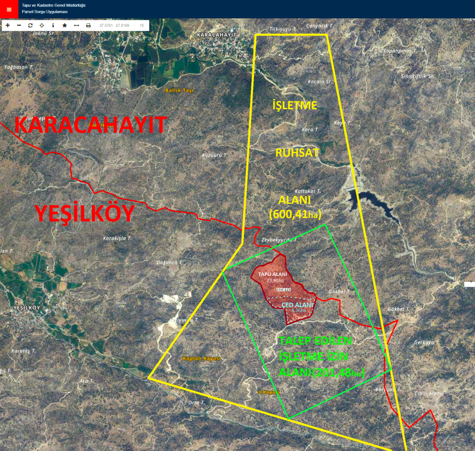 -Dava konusu, Söke ilçesi, Yeşilköy ve Karacahayıt Mahallesi'nin "Orman Alanı", "Zeytinlik", "Mera-Çayır-Otlak Alanı", "Tarım Alanı" ve "Önemli Doğa Alanı" vasıflı coğrafyasında madencilik yapılmasının hukuken mümkün olmamasına rağmen Davalı İdare'nin bu işlemi tesis etmesinden kaynaklanmaktadır.