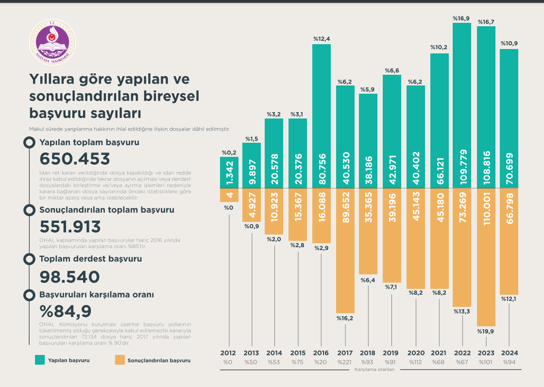 Anayasa Mahkemesi 2012-2024 yılları arasındaki Bireysel Başvuru İstatistiklerinde 2024 yılındaki düşüş dikkat çekti.