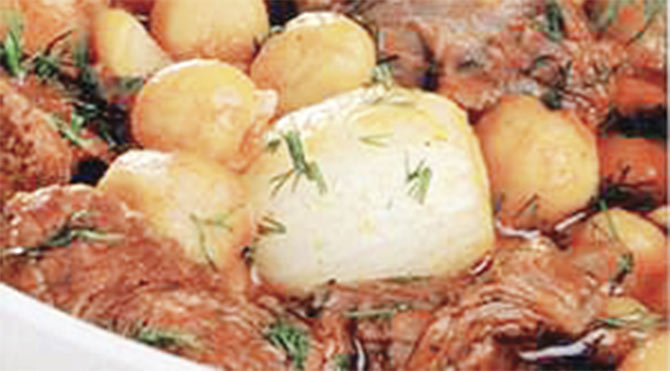 Yapılışı: Etler dağar (uzunca bir çömlek) içine konur. Arpacık soğanları soyulup dağara konur. Sarımsaklar ayıklanıp diş diş ilave edilir. Patatesler soyulup soğan büyüklüğünde doğranır ve dağara konulur. Salça suda eritilerek dökülür veya domateslerin kabuğu soyulur, dörde beşe bölünerek eklenir. Kestaneler bütün konur. Tuz , karabiber ve kimyon serpilir. Yağ eritilip içine dökülür. Hepsi karıştırılıp harman edilir , üzerini örtecek kadar su ilave edilir. Dağarın ağzı kalın bir kağıtla kapatılarak bağlanır. Fırında ağır ağır pişirilir. Etlerin pişip pişmediği kon-trol edilip sıcak servis edilir.