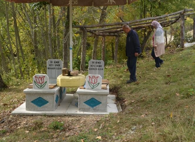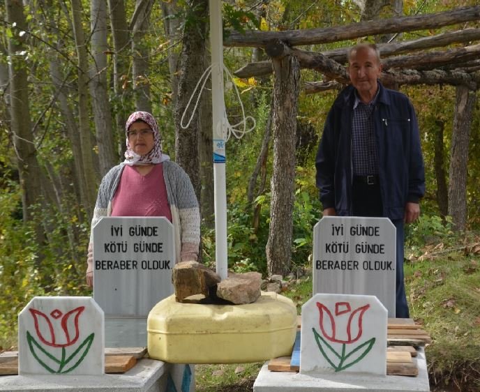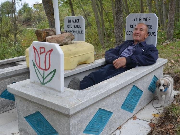 Eşim biraz gönülsüz oldu; ama sonradan ikna oldu. Eşim ikna olunca ben de mezarları yaptırmaya karar verdim ve yaptırdım. Mezarları bahçemin içerisine yaptırdım. Ben bahçemi çok seviyorum. Kavaklığımı seviyorum. Mezarların başına ara sıra gelip gidiyorum. Mezara bakıyorum, içerisine yatıyorum, yorulunca dinleniyorum. Kendime göre burada vakit geçiriyorum" diye konuştu.