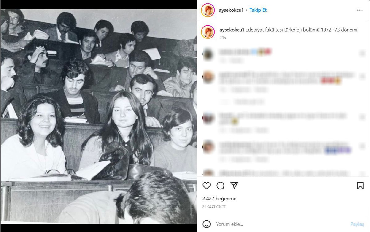Ünlü oyuncu fotoğrafının altına, "Edebiyat fakültesi Türkoloji bölümü 1972 -73 dönemi" notunu düştü.