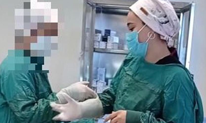 Özkiraz'ın ameliyathanede dikiş atarken, personelin ameliyat önlüğünü giyerken kendisine yardımcı olduğu, hastanede doğum günleri düzenlediği, gece nöbetlere kaldığına dair yaka kartı ile acil servis önünde çektirdiği fotoğraflar ortaya çıktı. (DHA)