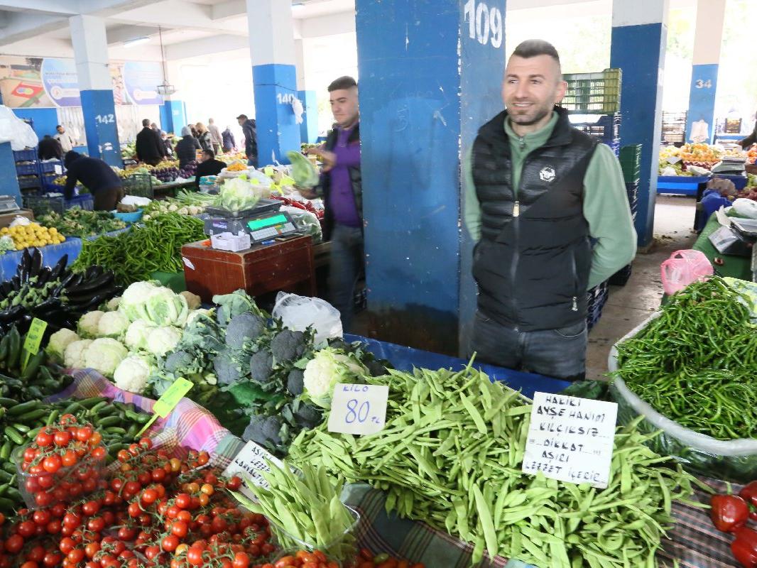Muratpaşa Yeşilbahçe Mahallesi'ndeki semt pazarında tezgah açan Celal Karaman, Gazipaşa'dan getirdiği az miktardaki ayşekadın fasulyenin kilosunu 80 TL'den satışa sundu.