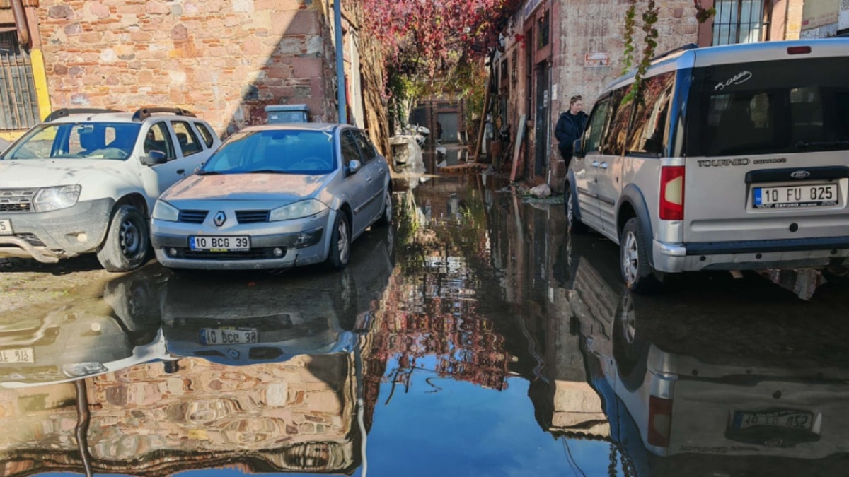 Murateli köyü girişindeki yol, su baskını nedeniyle ulaşıma kapandı. Meteoroloji’den alınan bilgiye göre, Ayvalık'ta son 24 saatte metrekareye 120 kilogram yağış düştü.
