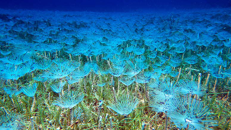 Melina Adası civarında da dalış gerçekleştiren Ceylan ve beraberindekiler, Gorgonia türü mercan resiflerini, müren, papaz ve gün balıklarını, tüplü kurtları kaydetti.
