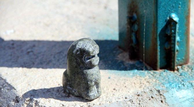 Bugün saat 15.00 sıralarında, Öğretmenler Sitesi yakınlarından geçen çayın üzerinde bulunan köprünün kenarında köpeğini gezdirirken bir poşet içinde üzerinde insan başı figürü bulunan ve kavalı andıran ahşap bir müzik aleti, oyma taştan yapılmış bir aslan başı ile birinin üzerinde geyik, diğerinde ise bir aslan figürü bulunan iki taş plaket bulan bir vatandaş, durumu jandarmaya bildirdi. Jandarma, tarihi değeri olduğu sanılan eserleri bulan kişinin ifadesinden poşeti, mülteci olduğu tahmin edilen üç kişinin bırakıp, hızla uzaklaştığını öğrendi. Poşeti bırakan üç kişinin yakalanması için çalışma başlatılırken, eserlerin tarihi değerinin bulunup, bulunmadığının tespit için balıkesir Müze Müdürlüğü'ne gönderileceği öğrenildi.
