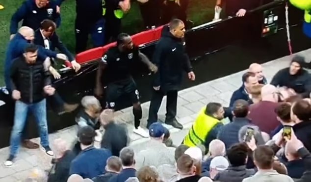 Şiddet patlak verdikten sonra Michail Antonio (ortada) reklam panolarının üzerinden atladı.