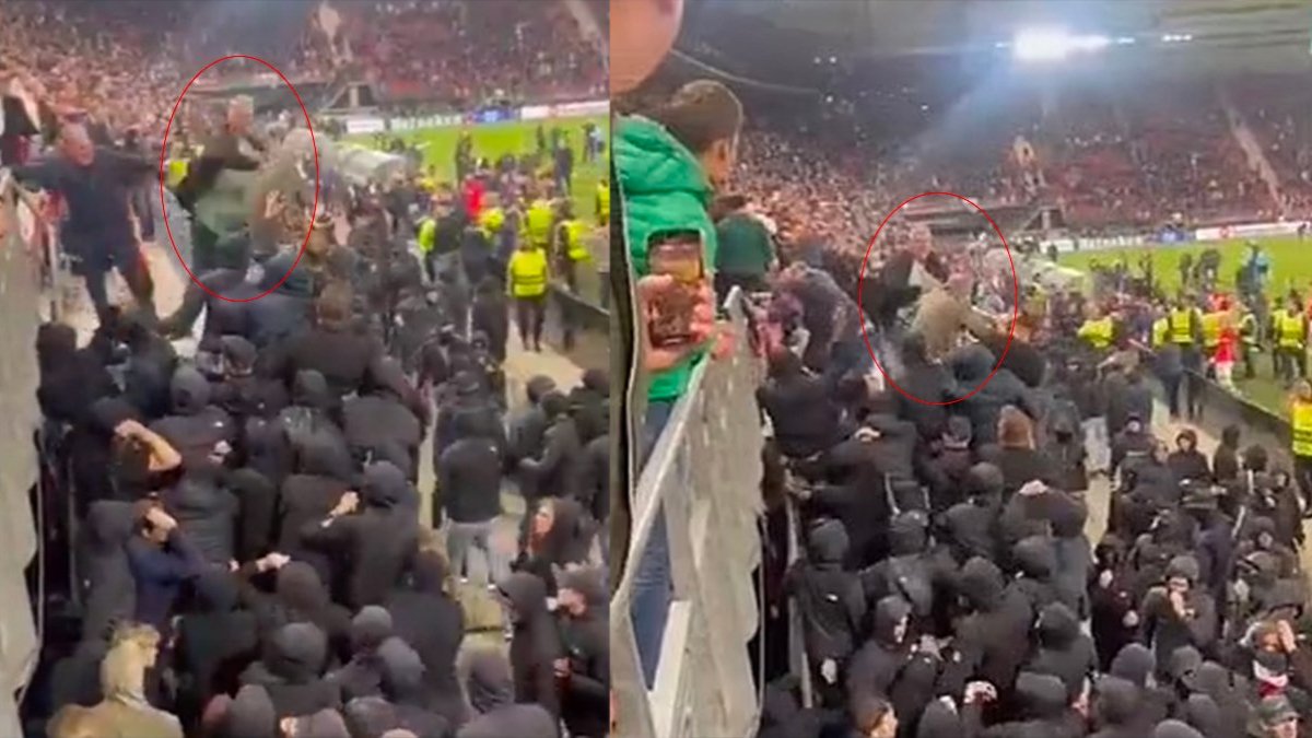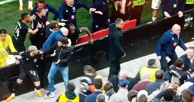 Kavga hızla kontrolden çıktı ve onlarca kapüşonlu holigan, West Ham oyuncularının ailelerinin ve arkadaşlarının bulunduğu bölüme akın etti. West Ham futbolcuları Michail Antonio ve Flynn Downes, tereddüt etmeden reklam panolarının üzerinden atlayarak tribünlere doğru yol aldı, onları yakından takip eden takım arkadaşları Lucas Paqueta ve Said Benrahma da hemen arkalarından geldi.