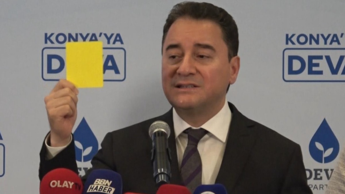 Babacan, tanıttığı belediye başkan adayları ile ceplerinden sarı kart çıkartıp "Yerel seçimlerde, belediye başkanlarımızın seçilmesi önemli. Ama bu seçimler, merkezi hükümete bir uyarı niteliği taşıyor. Eğer hükümetten memnun değilseniz, iktidarı uyarmak istiyorsanız, 'Arkadaş, yanlış yoldasın. Yanlış yapıyorsun, kendine gel, aklını başına al' demek istiyorsanız; bu yerel seçimler aynı zamanda hükümete bir sarı kart gösterme seçimidir" diye konuştu.