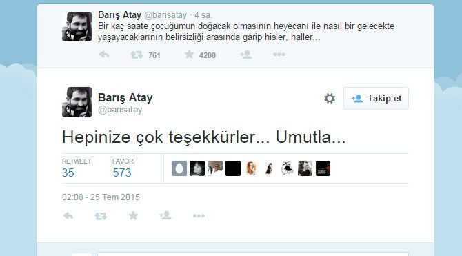 Redhack sözcüsü olmakla suçlanan ve gözaltına alındıktan sonra serbet bırakılan oyuncu Barış Atay, Twitter üzerinden takipçilerine baba olacağını duyurdu.
