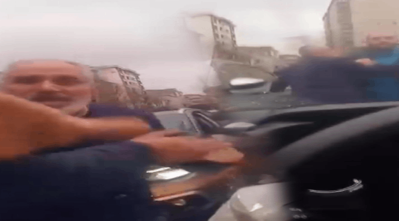 Aracından inen Hakan A. ise iddiaya göre 'Seni öldürürüm' diyerek tehditte bulununca Kadir D. yaşananları cep telefonuyla kaydetmeye başladı. Bu sırada Hakan A.,'O telefonu kırarım', 'Bunu yapma, sil' diyerek üstüne yürüdüğü Kadir D.’ye saldırdı. Kadir D.’nin yanında bulunan çocuğunun korkudan hıçkırarak ağladığı anlar cep telefonu kamerasına yansıdı. Olay yerinde bulunan İkram A.’nın araya girmesiyle taraflar ayrıldı.-