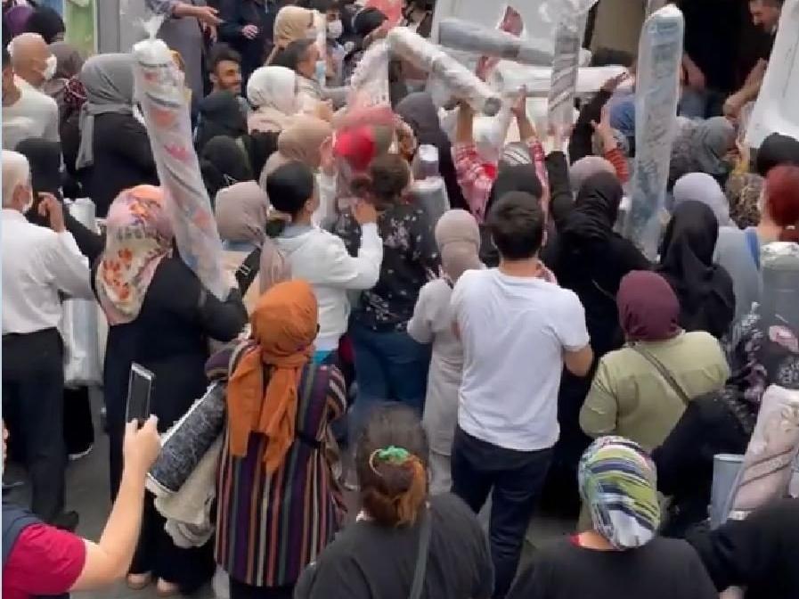 İndirimli halılardan almaya çalışan çoğunluğu kadınlardan oluşan kalabalık izdihama neden oldu. Kalabalık, 50 liradan satılan halıları almak için birbiriyle yarıştı.