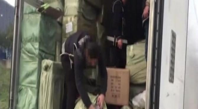 Polis ekiplerinin TIR'da yaptığı aramalar polis kameraları tarafından görüntülendi. Polis ekipleri TIR'da bulunan çuvalları açarak içinde bulunan gözlükler ve suni deriler kameralarca kaydedildi.