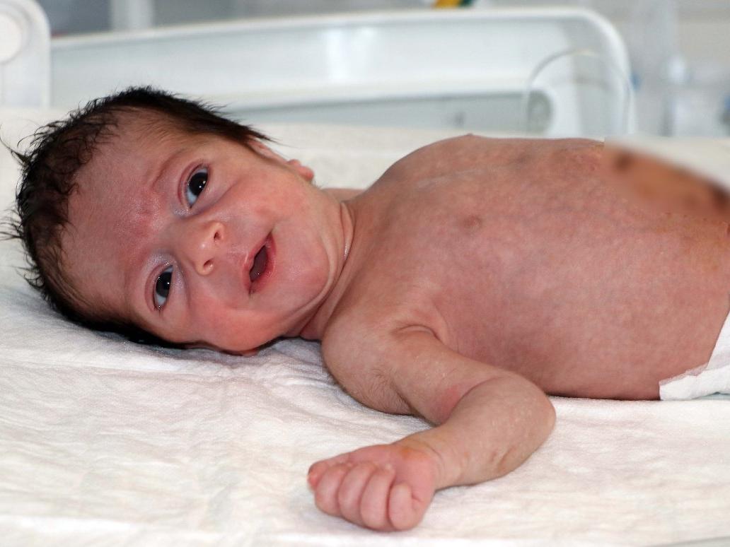 Suriye uyruklu Hiba Gazi (21) ve Ferid Cuma (23) çiftinin, 1 ay önce, Nesrin ismini verdikleri kız bebekleri dünyaya geldi. Abdulkadir Yüksel Devlet Hastanesi'nde gerçekleştirilen doğumda Nesrin bebek, bağırsakları karnının dışında olarak doğdu. Doğumunun ardından özel hastaneye sevk edilen Nesrin bebek, Çocuk Cerrahi Uzmanı Opr. Dr. Ergün Parmaksız ve ekibi tarafından ameliyata alındı. Yapılan 2 saatlik operasyonla Nesrin'in organları, karın içine yerleştirildi. 1 ay boyunca yoğun bakımda kalan Nesrin bebek, sağlığına kavuşmasının ardından taburcu edildi.