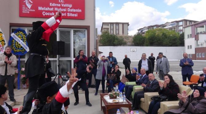 Açılışa Edirne Valisi Günay Özdemir, Belediye Başkanı Recep Gürkan, Trakya Üniversitesi Rektörü Erhan Tabakoğlu, Aile ve Sosyal Politikalar İl Müdürü Bilgin Öztaş ve yardımsever Melahat Datenin katıldı. Meriç İlkokulu öğrencilerinin gösterisinin ardından konuşan Aile ve Sosyal Politikalar İl Müdürü Bilgin Öztaş, Edirne'de son 3 yılda 14 çocuk evi açılarak 81 çocuğun yurtlardan mahalle ve apartmanlardaki ev ortamlarında kalmaya başladığını söyledi.