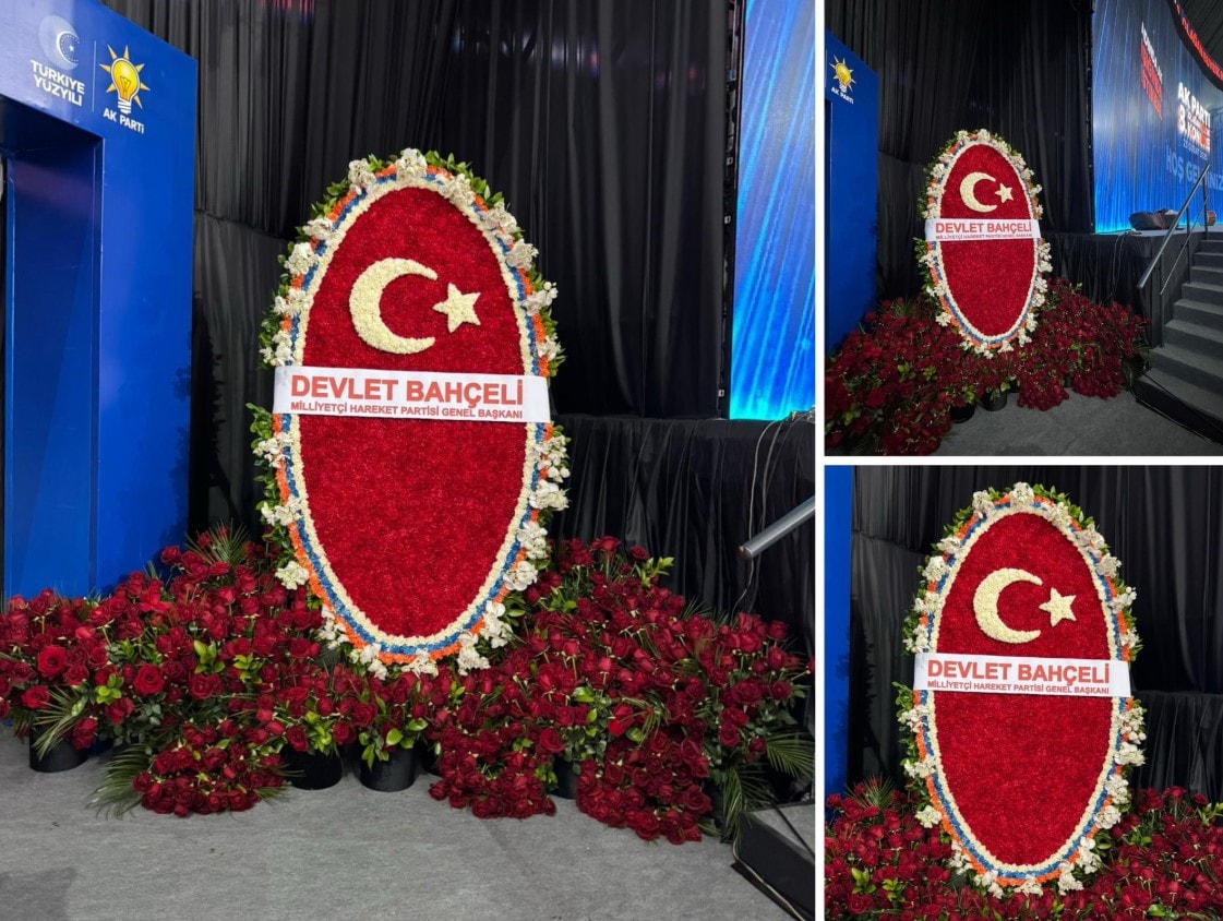 MHP Genel Başkanı Devlet Bahçeli, AKP'nin 8'inci Olağan Büyük Kongresi'ne gül, orkide ve karanfilden oluşan özel hazırlanmış bir çiçek gönderdi.